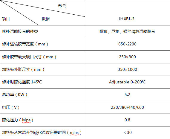 膠帶輸送機在運行過程中,由于物料中含異物或機械本身故障,會發生較長距離的沿膠帶縱向的撕裂。利用JHXBJ-3型電熱式膠帶修補器,可迅速有效地修復膠帶的縱向撕裂,另外本廠可根據用戶的需求,生產特殊規格的修補器械。